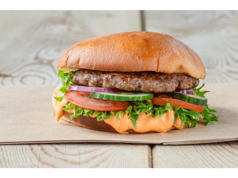 Juicy homestyle burger i briochebrød, med deilig spicy mayodressing, crispysalat, tomat, agurk, jalapeños og rødløk,.