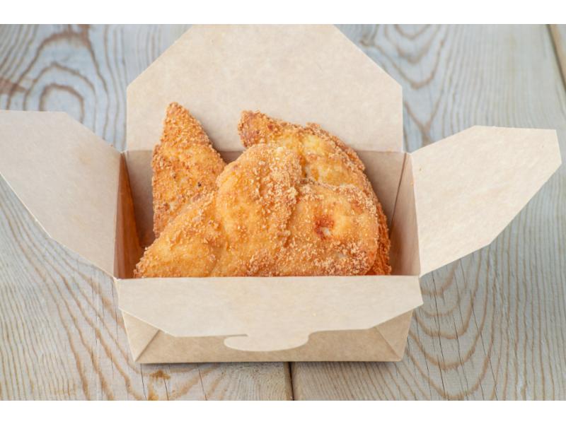 Friterte gylne og sprø panerte stykker av kylling indrefilet.