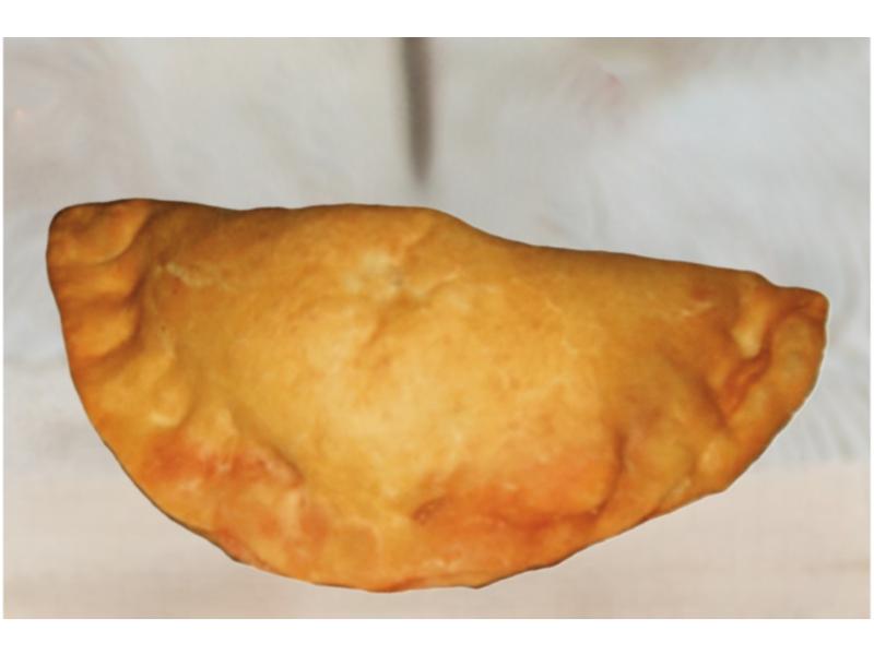 Fritert calzone med skinke, paprika, rødløk, revet mozarella og pizzasaus,.